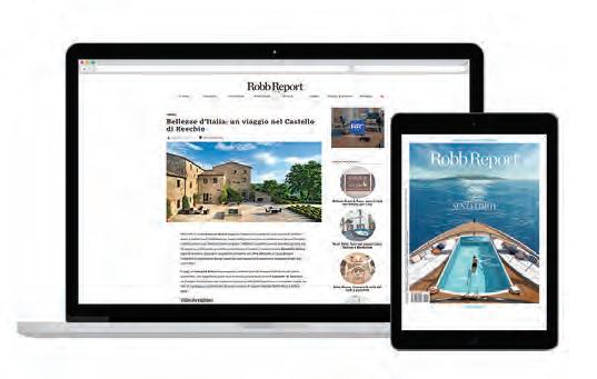 BFC MEDIA, PRESENTA L’EDIZIONE ITALIANA DI ROBB REPORT, IL BRAND EDITORIALE PIÙ FAMOSO AL MONDO PER IL LUSSO E IL LIFESTYLE. UN PROGETTO MULTIMEDIALE CHE COMPRENDE IL MAGAZINE, IL SITO ROBBREPORT.IT ED ESCLUSIVE EXPERIENCES. UN’OPPORTUNITÀ PER PROMUOVERE IL MEGLIO DELLA CREATIVITÀ DEL MADE IN ITALY IN TUTTO IL MONDO.