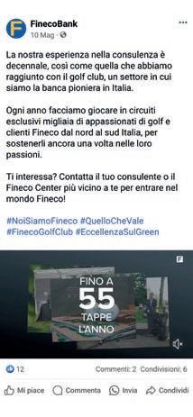 Quello relativo al golf club è un settore in cui FinecoBank è banca pioniera in Italia. Ogni anno fa giocare in circuiti esclusivi migliaia di appassionati di golf e clienti dal Nord al Sud Italia.