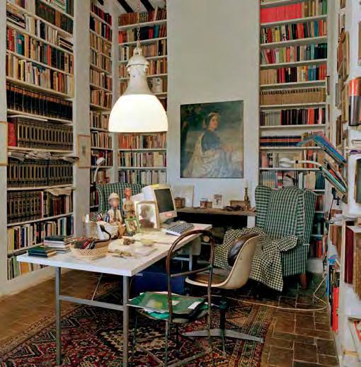 interviene la capacità di immaginare di un grande architetto amico della coppia, Marco Zanuso, che ridà vita ad aie, cortili, granai, a una torre del Trecento. «Ogni fine settimana partivo da Milano, per cercare di riportare alla luce quella casa. Arredare è una parola che non mi piace molto. A me sembra che si crei complicità tra chi occupa una casa e la casa stessa, con le sue pareti, i suoi spazi. E alla fine è la casa a dirci di che cosa ha bisogno», ricorda Beatrice Monti nel libro pubblicato da La nave di Teseo, “I miei scrittori e altri animali”, con le foto di François Halard e i contributi di tanti amici. «A Milano avevo la mia galleria, L’Ariete, erano anni di grande effervescenza. Li ho esposti tutti: Francis Bacon, Joan Miró, David Hockney, Antoni Tàpies, Robert Rauschenberg. Ma non volevo vivere lontano da mio marito. Lasciai la città. Il mio amico Leo Castelli si infuriò: “Ma come, molli proprio ora? Tra sei mesi saremo miliardari”». L’arte contemporanea sbuca ovunque a Santa Maddalena, tra cuscini di Tangeri, tappeti di Kabul, figure indiane, pitture secente-