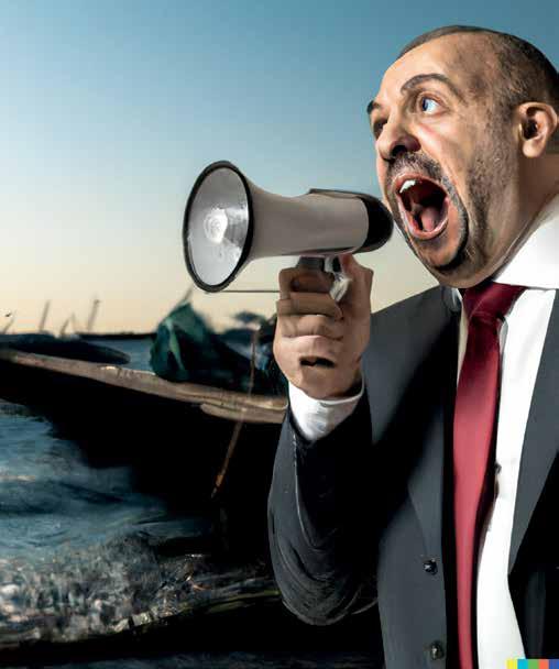 Basta scrivere in inglese una frase descrittiva a piacere e il sistema la “traduce” in alcune immagini generate in automatico (e, volendo, si può anche usare un altro sistema di intelligenza artificiale, come Deepl.com, per avere una traduzione automatica dall ’ italiano). Abbiamo provato con «un politico italiano che grida sulla minaccia di una invasione di immigrati dall ’A frica tramite nav i di Ong». Ci sono apparsi uomini e donne in giacca, con il megafono; v isi a volte italiani a volte – curiosa coincidenza – con tratti nord-africani. Quasi sempre un mare sullo sfondo e abbozzi di nav i.