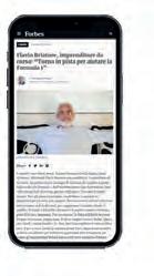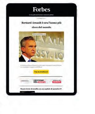 STORIES 79 | Passaggio di testimone Raffaella Galamini 82 | Il Virgilio della burocrazia Raffaella Galamini 84 | La prevenzione in un’app Roberta Anati 86 | Il network dei migliori Danilo D’Aleo UNDER 30 88 | Cuore e passione Massimiliano Carrà e Matia Venini HEALTHCARE 101 | Un futuro limpido Elisa Serafini 104 | La salute che cambia Lucio Torri SMALL GIANTS A cura di Piera Anna Franini 109 | Lana per sempre 112 | La Biella che si reinventa DESIGN A cura di Valentina Lonati 115 | Trame sostenibili 118 | Sartoria industriale FORBES LIFE 121 | La montagna incantata Alessia Bellan 126 | La bici va forte d’inverno Matteo Rigamonti LIVING 127 | Milano Alessia Bellan 128 | Roma Mara Cella 129 | New York Aka Sarabeth 130 | Pensieri e parole Grandi ricchezze 121 88 109 127 BRANDVOICE a cura di Santo Trovato 106 | Costruire un business col sorriso