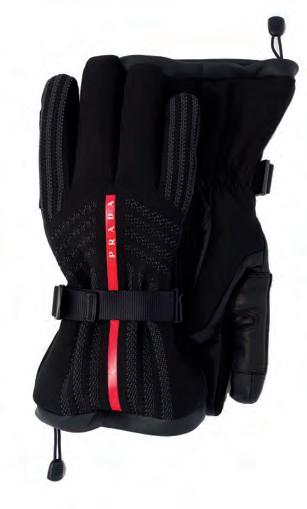 Realizzati con una lavorazione a maglia tridimensionale, i guanti in tessuto firmati Prada Linea Rossa. Una seconda pelle, il dorso in maglia privo di cuciture e idrorepellente si combina al palmo iper resistente in pelle di capra e alla membrana in Gore-tex impermeabile e antivento. € 540 prada.com