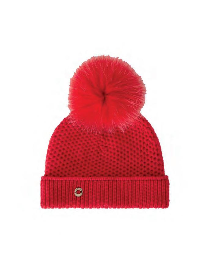 Rougemont Loro Piana Versione contemporanea del classico berretto in morbida maglia di cashmere a punto crochet, impreziosito da un ponpon in pelliccia di volpe staccabile. € 470 loropiana.com