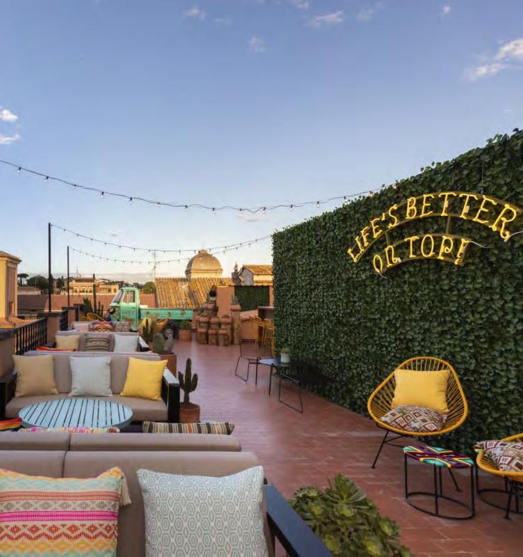 Parallelamente alla ricerca estetica e concettuale del nuovo ipotetico ristorante del momento, sta progressivamente facendosi strada un altro fenomeno in qualche modo connesso ma indipendente. Sono gli hotel questa volta i protagonisti, perché non è più la loro funzione di luogo di permanenza notturna, riposo fisico e mentale a fare da biglietto da visita, quanto un’articolata e molto più complessa struttura. Se un tempo si parlava più di pensioni, garnì e alberghi – e usare la parola italiana sembra quasi rétro – oggi in qualche modo si sta recuperando il medioevale concetto di locanda ma attualizzato e ridisegnato, impreziosito nei dettagli e completato nell’offerta. Non vale più la pena progettare hotel senza un comparto food and beverage così come non ha più senso non puntare ad un decoro e un arredo caratterizzati da uno stile preciso, un gusto, un colore, la firma di un noto architetto. È vero che l’obiettivo pragmatico resta sempre quella di avere un luogo dove trascorrere la notte in città diverse dalla nostra, ma questo spostarsi – che sia per piacere o per lavoro – prevede che ogni destinazione costituisca sempre più un’esperienza. C’è chi ci riesce meglio e chi resta indietro, chi ha messo a terra progetti ambiziosi ma non è riuscito a trasmetterli e chi invece è un campione in comunicazione e public relations. È l’esempio del Chapter Hotel Roma, un insolito ritrovo per stranieri in capitale alle porte del Ghetto, nel rione Regola, ap-
