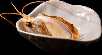 Scampo, cipolla bruciata, emulsione di maialino, salicornia.