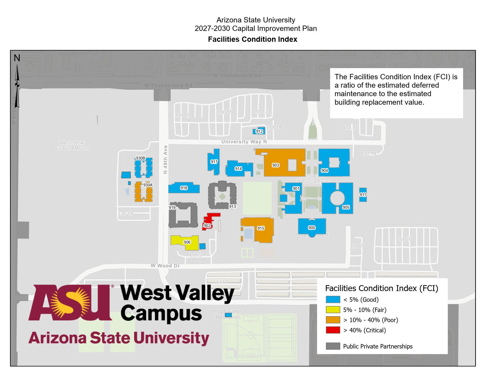 • The Facilities Condition Index (FCI) is a ratio of the estimated deferred maintenance to the estimated building replacement value.
