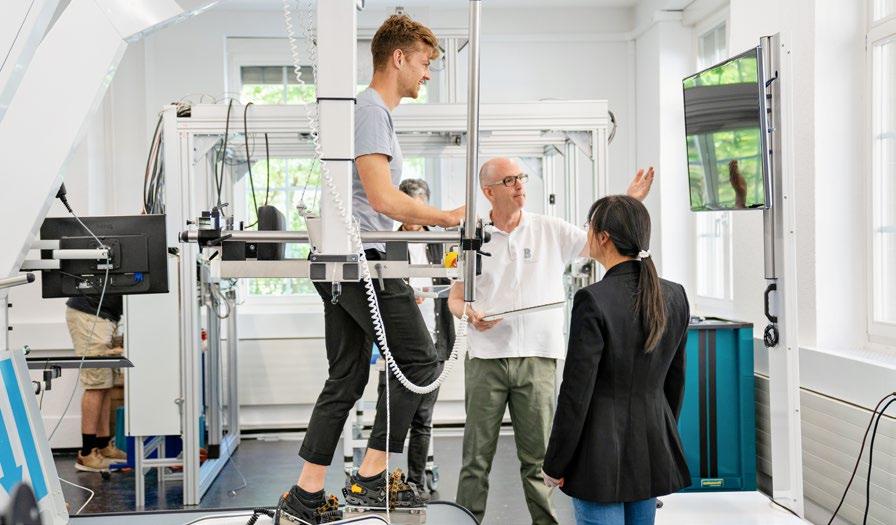 Kenneth Hunt, Professor of Rehabilitation Engineering, Mechatronics and Control Engineering and Head of rehaLab (Laboratory for Rehabilitation Engineering) at BFH-TI, has also researched for several years ways to improve the health of people with physical impairments. For example, he has been involved in several SNSF research projects. For a new project, the researchers will spend the next four years developing a robotic gait orthosis with active assistance for the arms, which is to be used in the rehabilitation process of patients with neurological disorders. In clinical rehabilitation, robotic gait orthoses have primarily been used to relearn how to walk, focusing on the legs and barely on the arms, despite the latter’s crucial role in walking. “We are looking into how this new type of robotic gait orthosis could speed up and improve rehabilitation,” says Kenneth Hunt. For this purpose, the change in brain dynamics and muscle activity is examined with and without arm support.