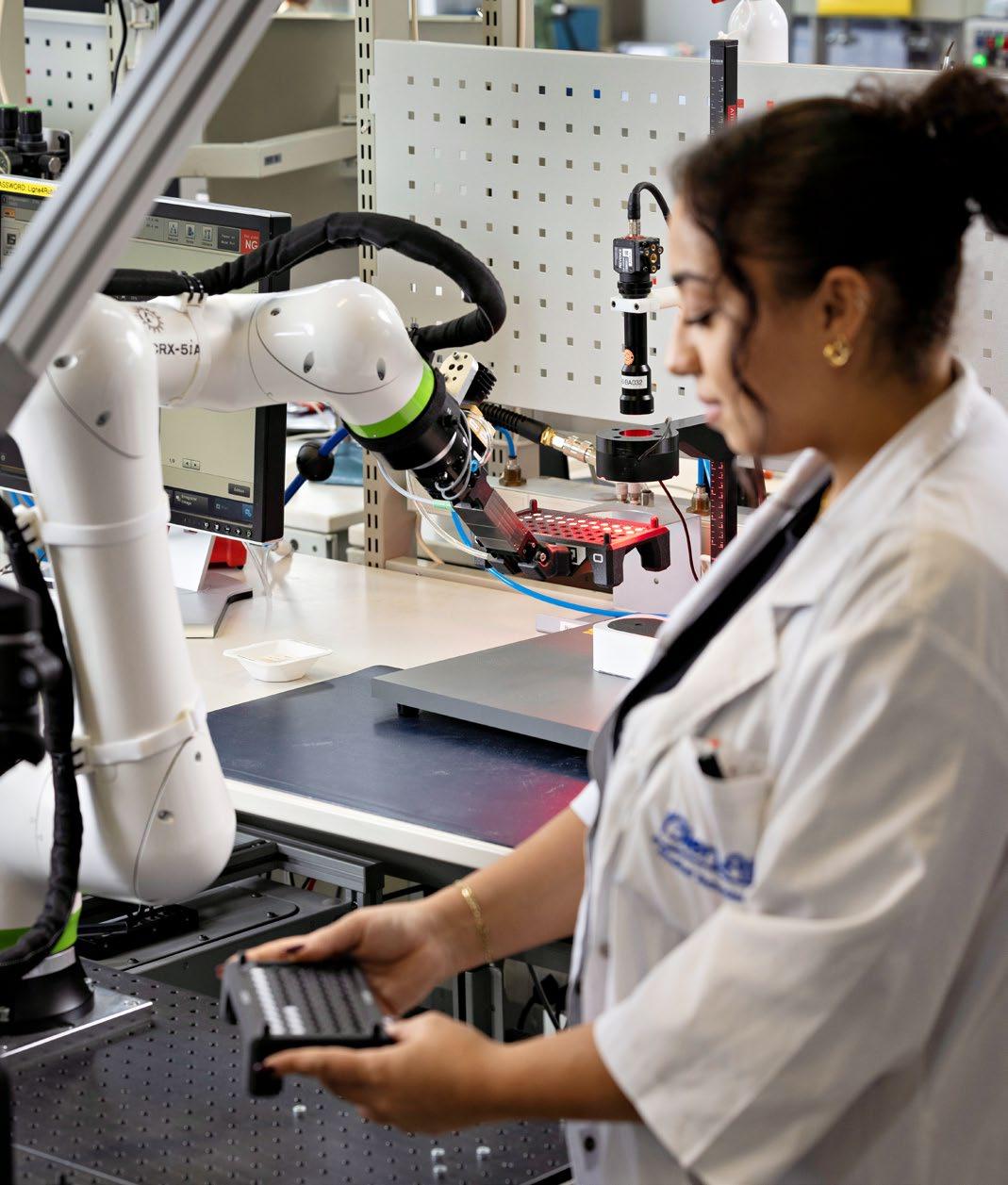 Der Fachbegriff «Cobotics» steht für die Zusammenarbeit von Mensch und Robotik. Wie hier bei Bien-Air Dental in Biel, einem renommierten Schweizer Unternehmen, das sich auf die Konzeption, Entwicklung und Herstellung von hochpräzisen medizinischen Instrumenten für die Zahnheilkunde spezialisiert hat: Der Roboterarm hilft den Menschen dabei, die mit Keramik beschichteten Werkstücke unter die Prüfkamera zu legen und jene auszusortieren, die nicht innerhalb der Toleranzgrenze von einem Tausendstel Millimeter (1 µm) liegen. Möglich macht das eine Lösung von Auto-Mate Robotics, einem Spin-off der BFH-TI. Die Roboterzelle mit der revolutionären Programmieroberfläche ist momentan in der Validierungsphase.