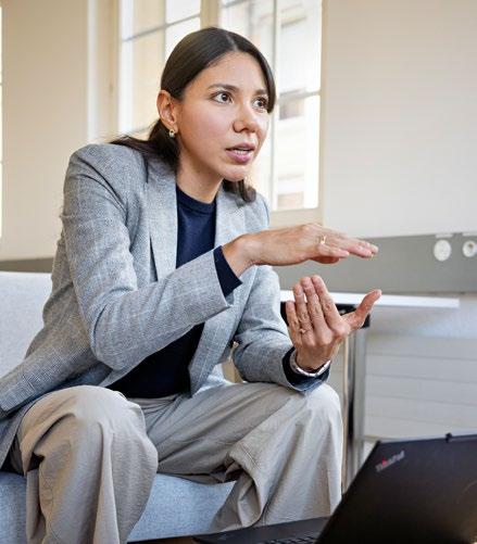 Maria Franco Mosquera inspiriert die Studierenden dazu, proaktive Führungskräfte zu werden, die langfristigen Werten den Vorrang vor kurzfristigem Gewinn geben.