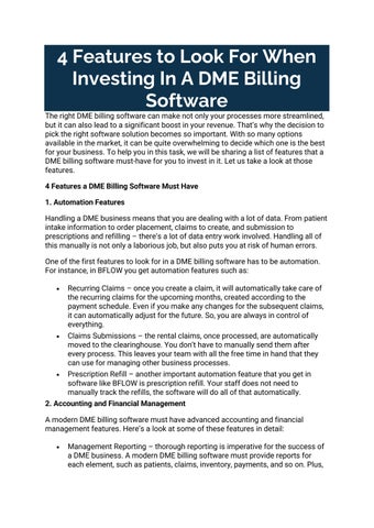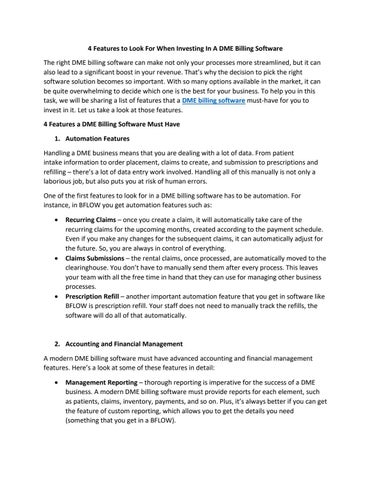 BFLOW Solutions, Inc. is a software as a service (SaaS) DME Billing Software and DME Business Management Software. BFLOW Solutions, Inc. is designed to be "One"? software solution, eliminating the need for any other software, service or tools to run a DME business. An all inclusive solution built on today's most modern technology.https://www.bflowdmebillingsoftware.com/