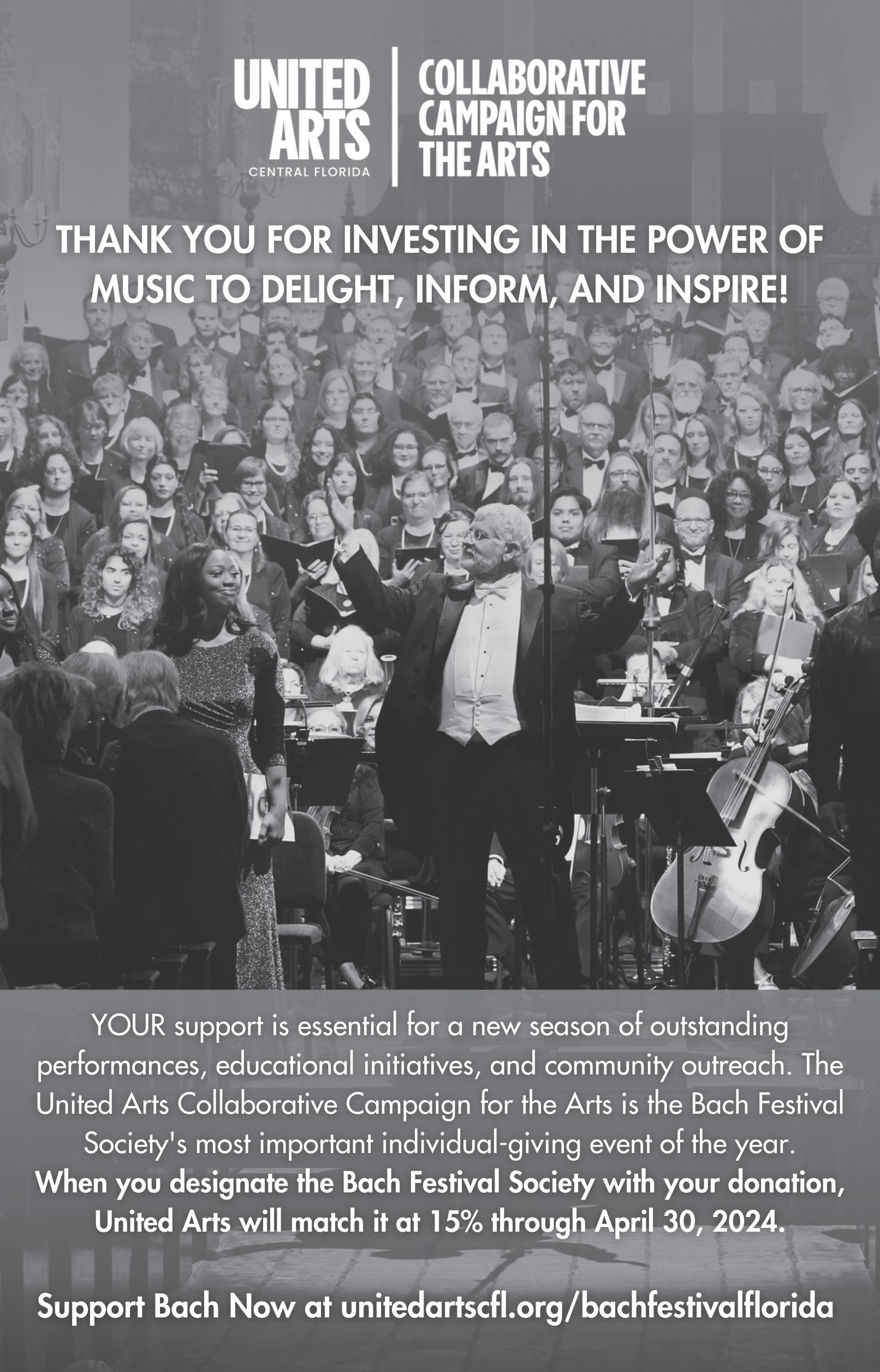 Performance details are subject to change. To learn more about cancellation, exchange, and subscription policies, please visit BachFestivalFlorida.org/ticket-policy.