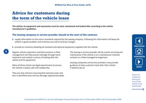 Advice for customers during the term of the vehicle lease (continued)