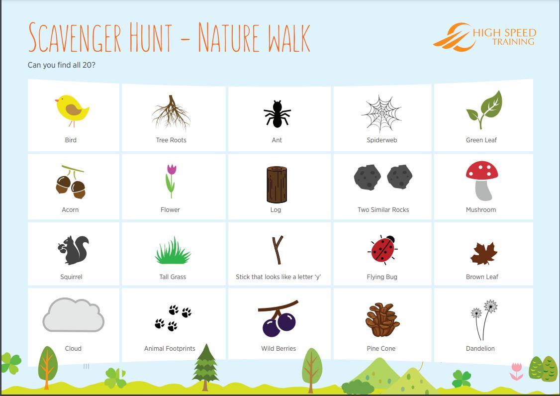 Combined with the physical health benefits of a walk in nature, the scavenger hunt will get students thinking about the different plants and animals that live on their doorstep and encourage care for the environment.