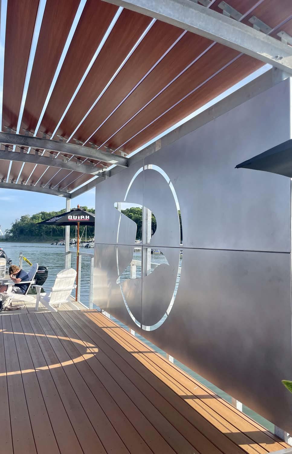 Briefly mentioned earlier, the stage was designed as a focal point for the dock. The client wanted to take advantage of this as a marketing opportunity, so the marina logo was incorporated into the backdrop. After the schematic design was done, the studio was divided to detail certain components. I was tasked with the backdrop and assembly. A frame and clip system was developed that would connect to the columns of the overhead structure. This system would support 4 panels that would be produced by Standard Sheet Metal in Kansas City. Furthermore, I oversaw the construction process of the frame to make sure there was little to no error in the clip locations because multiple parties were a part of the process.