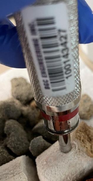 Biocemented sample with qualitative unconfined compressive strength (UCS) Testing using a pocket penetrometer.