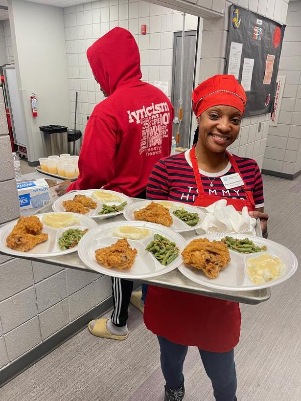 Hammond staff serving meals to our families for their Club Thanksgiving dinner.