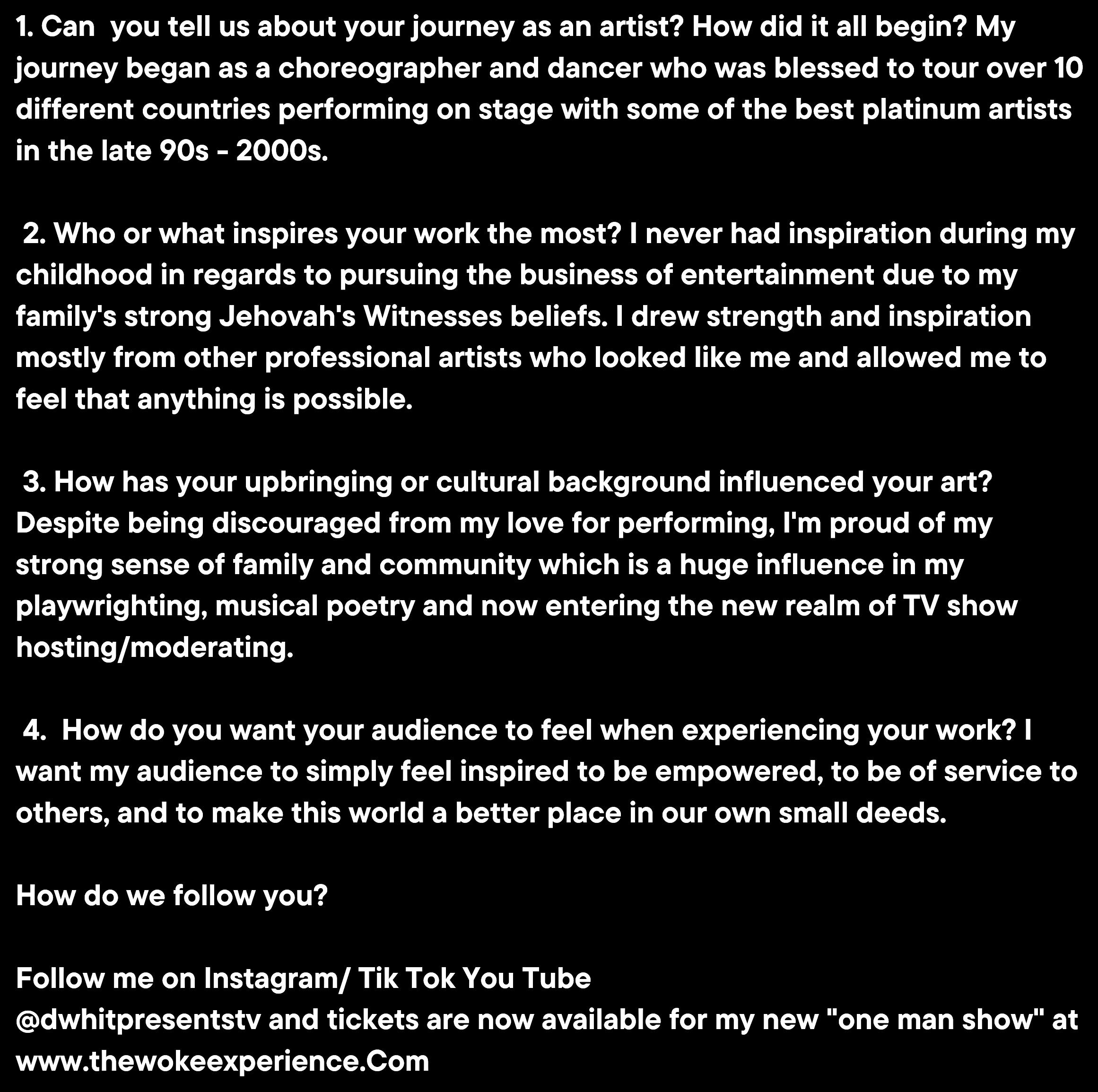 It started when I was a little girl I used to write lyrics to songs from melodies tjst would start to play in my mind. I expanded on my writing by writing screenplays for church events. I've always been a fan of art, music and culture.