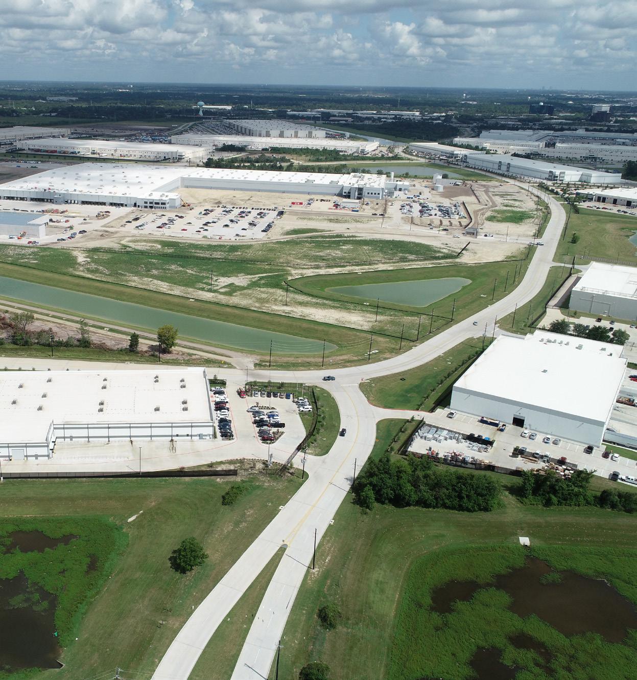 This is a 170-acre industrial park site located within Harris County. The project was broken into two phases. Phase I of the project consisted of four cross-dock or front-load distribution buildings totaling approximately 615,000 square feet. The project also required wetlands mitigation and US Corps of Engineers permitting. The site was annexed into a utility district to provide public utilities to serve the ultimate development. As part of Phase I of the development, BGE designed plans for the construction of new public infrastructure, including new public roadways, expansion of an existing public road, a public bridge, a traffic signal, and ultimate detention/ mitigation ponds. Design and construction of the buildings and private civil-related items were designed and coordinated simultaneously by the BGE team as part of the services.