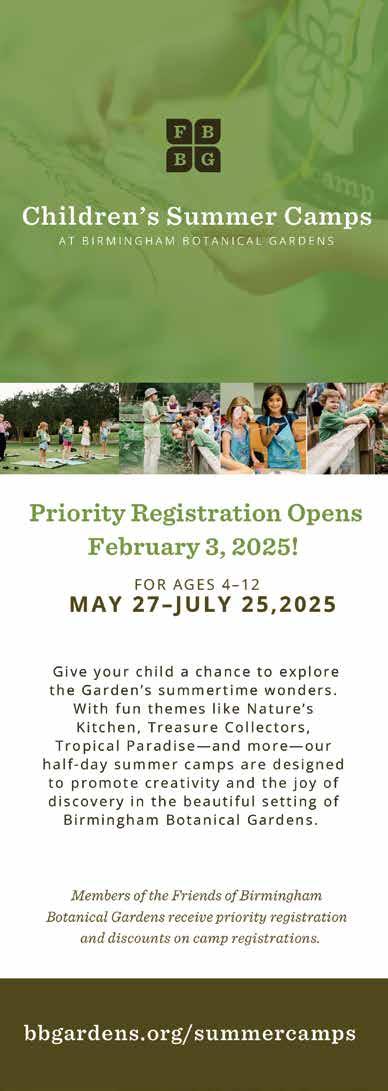 ©2024 Friends of Birmingham Botanical Gardens. All rights reserved. 2612 Lane Park Road, Birmingham, AL 35223 205.414.3950 | bbgardens.org communications@bbgardens.org