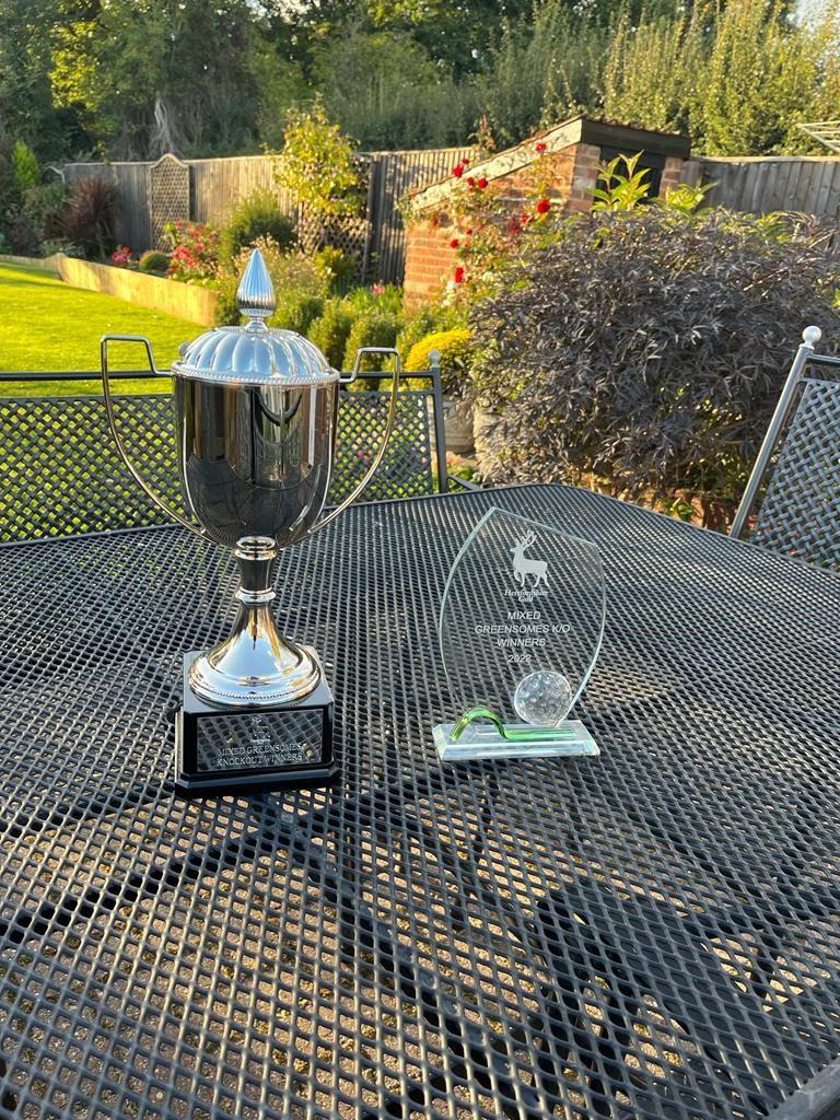 This is a very competitive mixed pairs event always held on the August bank holiday Monday. Congratulations to Linda Reeve (Chair of Rules and Handicap Committee) and Lee Edwards who has hit a winning streak. Here they are collecting the lovely trophy (not to be dropped!).