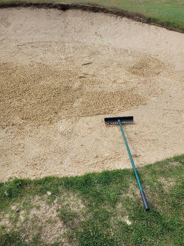 Here is a photo of a perfectly positioned rake unfortunately right next to a set of perfectly formed footprints. How disrespectful of that player to walk out without raking them. Please do make golf enjoyable for your playing partners and those following you and then it’s OK to expect those in front to have done likewise.
