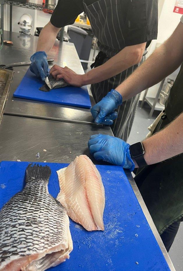 Stevie, our newest Trainee Chef, has had a lesson in fish handling skills by Joe, our second in command.