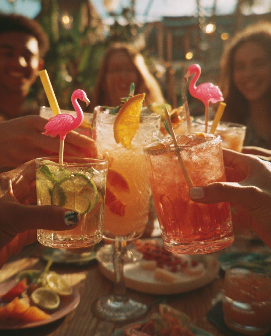 One last summer of chaos before lectures begin. Zesty and bright. Serve in shot glasses or short tumblers with flamingo stirrers or citrus wheels.