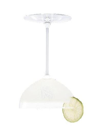 LIME JUICE AND SALT RIM IF DESIRED. flOAT HALF PAssION FRUIT