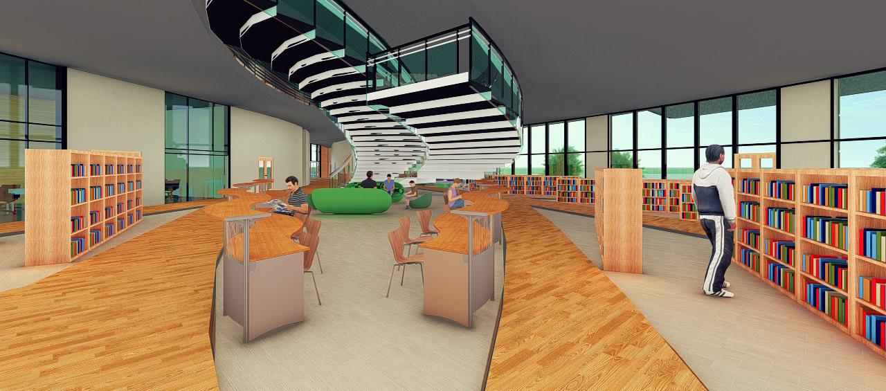 A COMMUNITY LIBRARY OPEN THAT PROVIDES UNIQUE SPACES FOR USERS NG WITH PROVIDING A VAST VIEW OF THE PACIFIC OCEAN , AND IS FUNCTIONAL HE BUILDING