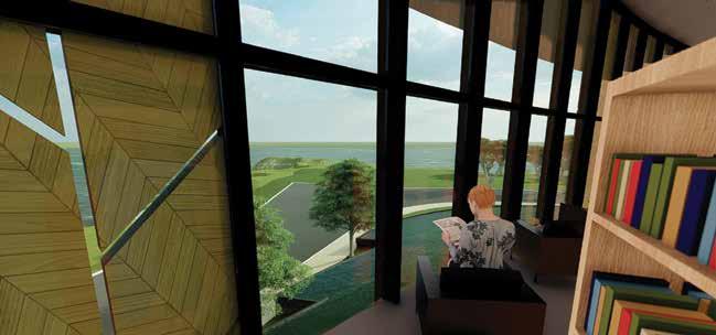 Located along the shores of Port-au-Prince, Haiti, the Aqua Growth Community Center is a floating, community-driven space dedicated to education, sustainability, and environmental resilience. Bridging land and water, the center fosters connection through a library, classrooms, mixeduse conference rooms, a commercial kitchen, fitness areas, and workshops. Open-air spaces, rooftop terraces, and a boardwalk enhance circulation, creating an engaging and dynamic environment.