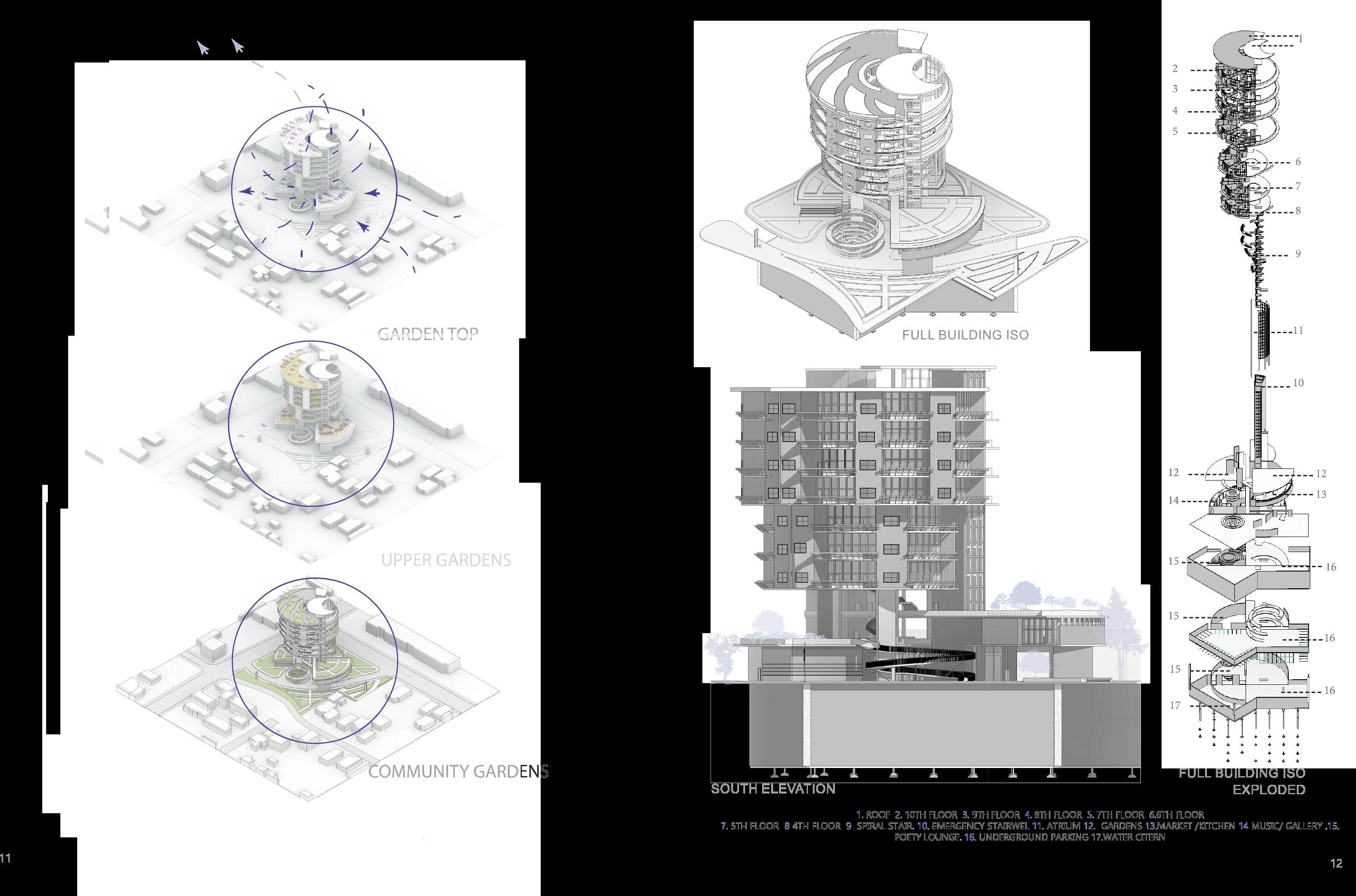 Designed to withstand coastal challenges, the structure is anchored by reinforced concrete piers, transitioning into rubber stoppers and two-way floor slabs for flexibility and stability. A 4-foot-thick foamcrete foundation ensures buoyancy, supported by a 30x30 grid system of reinforced concrete columns and cross-laminated joists. These elements work together to distribute forces efficiently, ensuring structural balance on the water. For Sustainable practice, an integration of vertical towers is used for food production, water collection, and structural stability. Inspired by coastal ecosystems, mangrove trees are planted to buffer waves and prevent erosion. Oyster blocks are used to strengthen ocean walls, naturally filter water, and serve as a sustainable source of both food and building materials.