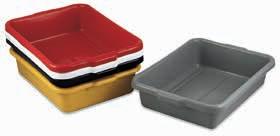 Plástico de alta densidad. Sin costuras, para su fácil limpieza. Las agarraderas, debajo de los bordes, permiten encajarla dentro de las otras. Se puede lavar en el lavavajillas. Se esteriliza según las normas industriales. Peso: 1kg / 2.3 libras.
