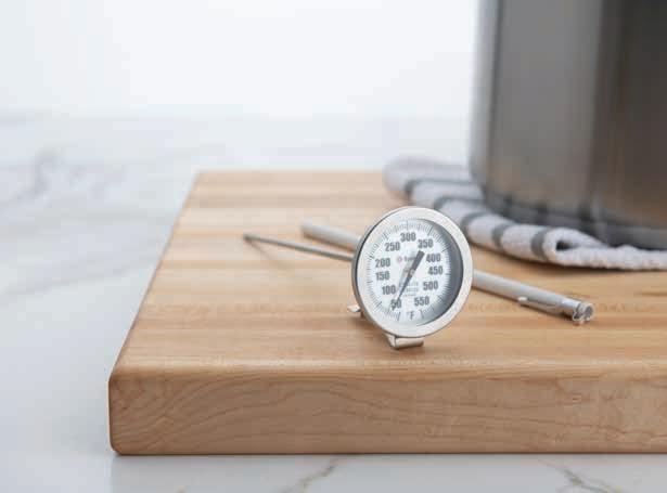 Doble escala. Exactitud de +/-1°F. Mango resistente al calor. Clip ajustable para la cacerola. Se puede lavar en el lavavajillas. 2.3” / 5.7 cm de diámetro del dial 6.3” / 15.8 cm de altura.
