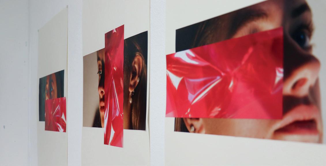 themes, including abstract seascapes, unusual viewpoints within portraiture and etching and lino prints inspired by natural forms. The clear grounding of skills and approaches was evident within the show, and it was thrilling to see the more independent work develop within the sketchbook research; it clearly reflected the culmination of students’ learning and creative development. Interesting personal themes such as family, identity and society were reflected upon by students within their externally set assignments, and a wide range of approaches and materials were handled with skill and ingenuity. The diversity of themes, techniques and materials showcased in this exhibition was truly impressive, illustrating the breadth of the curriculum and the students’ willingness