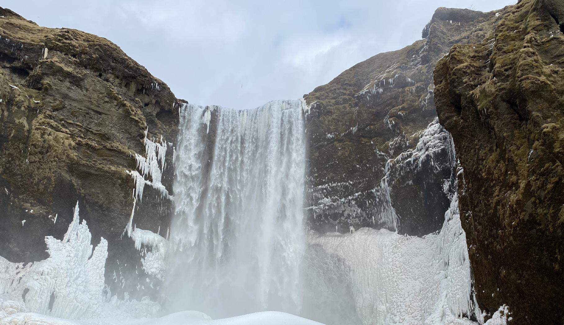 within the first hour of landing at the airport. From this point onwards, during the fiveday, four-night trip the students saw volcanic craters, huge spectacular waterfalls such as Seljalandsfoss, fresh steaming lava from the Fagradalsfjall eruption in 2021, the ice capped Solheimajokull glacier, Strokkur geyser and had the chance to swim in a geothermal pool.