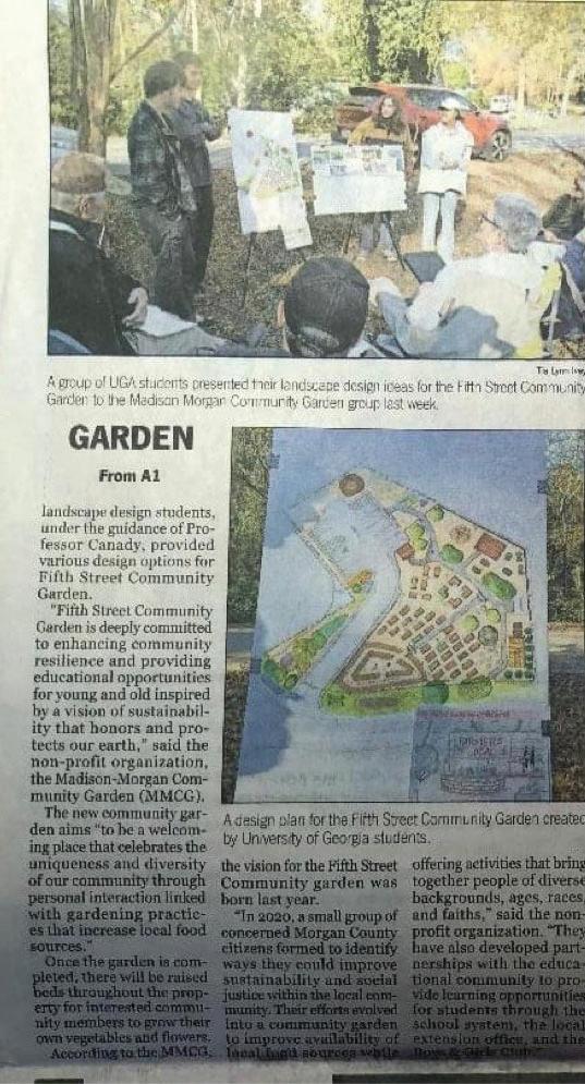 We w er e gr an te d th e op po rt un it y to p ro vi de d es ig ns f o y a co mm un it y ga rd en i n th e to wn o f Ma di so n, G eo rg ia M st u d i o c l a ss v i s i t e d t h e s i t e, a b o ut 5 0 m i nu te s ou ts id e o f A th en s, t o me et w it h co mm nu ni ty m em be rs i ns pi re d to b ri ng t he ir n ei gh bo rh oo d to ge th er t hr ou gh g ro wi ng f o od