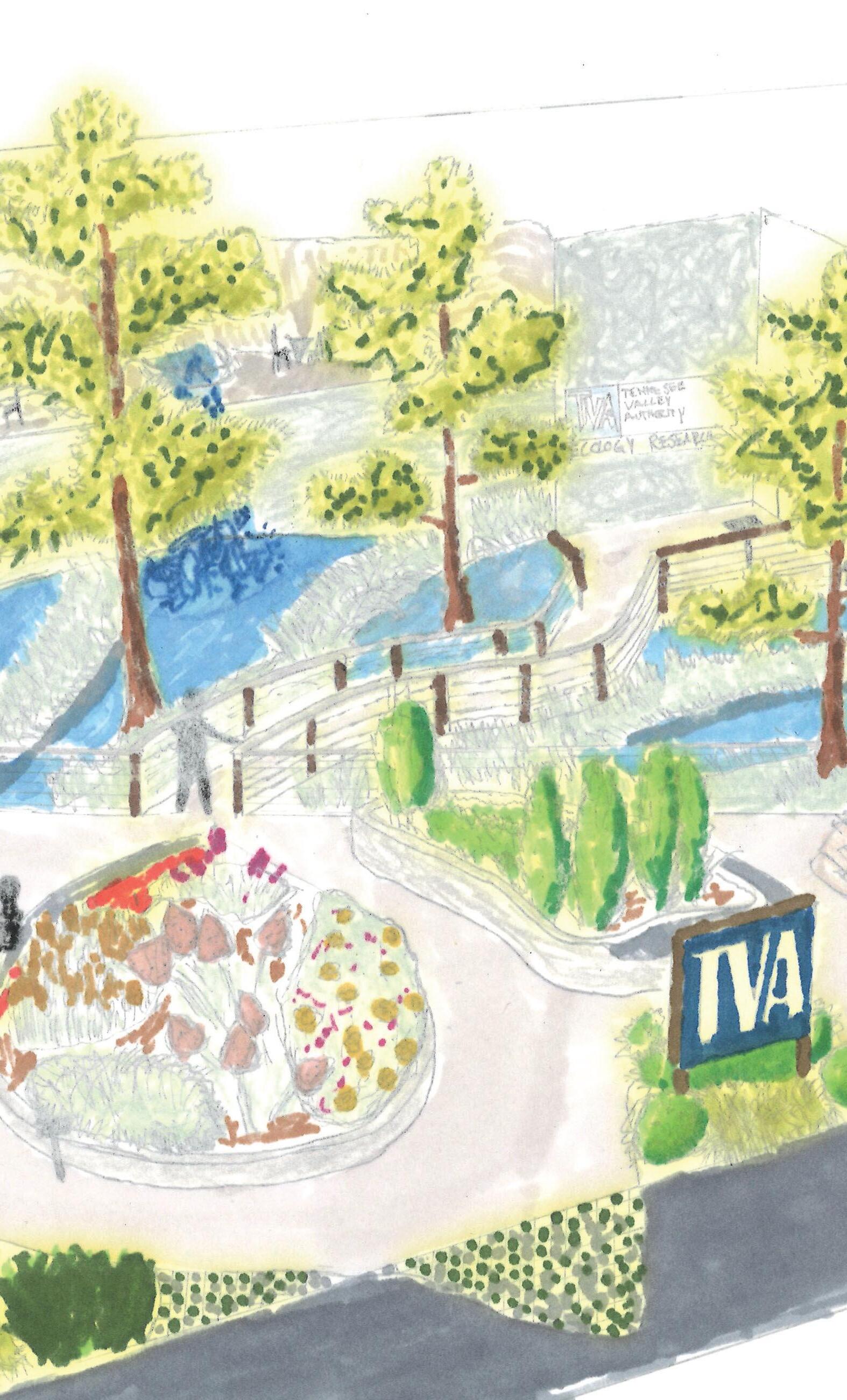 A c Ac r o ro ss s s t h e he r iv e r er f r o ro m th h e TV T VA A of f i fi ce e y l i li es e s R en e n na n a is i s an ce e p ar a k, k , d es s i g ig ne n e d b by H a Ha r g rg re r av a v es e -J on n o es e s . Th T e pa p a rk r k f ea e tu es s a na n a t i ti ve e w et t l a la n d nd r e h eh a b ab il i l i t it at a t i o io n zo z ne , w h wh ic c i h he e h lp p s na n a tu t ra r a ll l l y f i fi lt l t er e r p ol o lu u te t d ru n o no ff f f h ea a e de d e d t o to w a wa r d rd s th t h e Te nn n n es e ee R i Ri ve v r. r T hi i s pa a p rk k r s er e r ve v d as a s m aj j or o r i n in sp s p ir r at t a io o n f o fo r th h t is s i d es s e i g ig n. n
