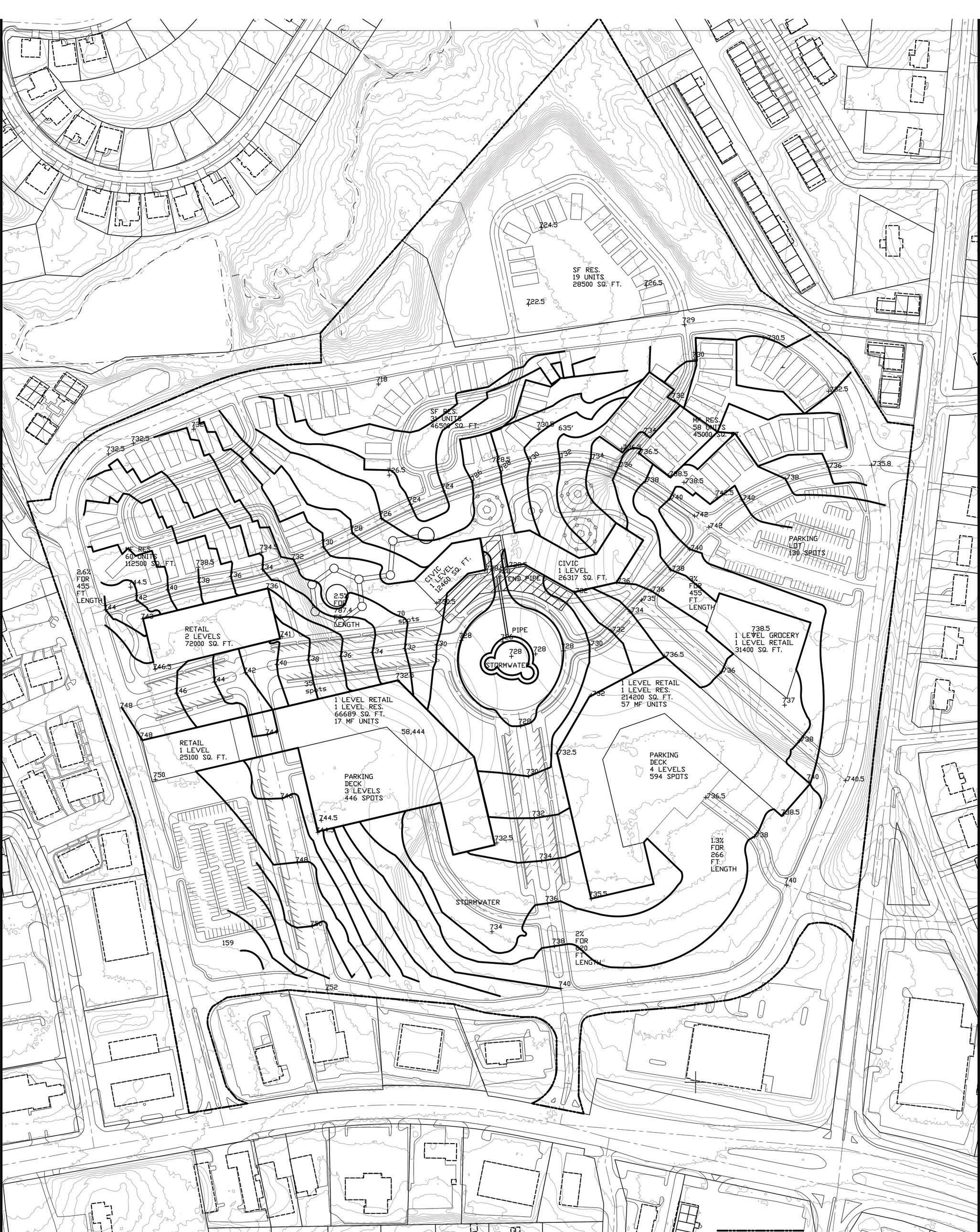 My g ro up w as t as ke d wi th d ev lo pi n g a d es i g n fo r a mi xe d l us e d e v l op me nt , w h i c h wo u l d i n c l u d e mu l t i - st or y re ta il b u il di ng s, a c iv ic c en te r se rv in g as t he n ew s it e o f t he G e ro gi a Mu se um o f Na tu ra l Hi st or y, mu ti -f am il y to wn ho me s an d si ng le f am il y re si de nc es .