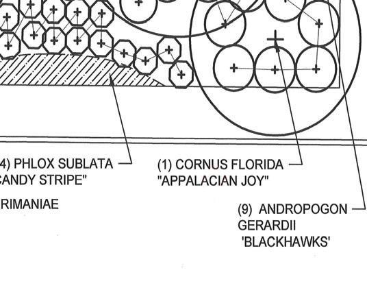 (1)1-3/4" cal. Cornus 'Venus' (16) Sarcoccoca 'Fragrant Valley' (3) Camelia 'Buttermint'