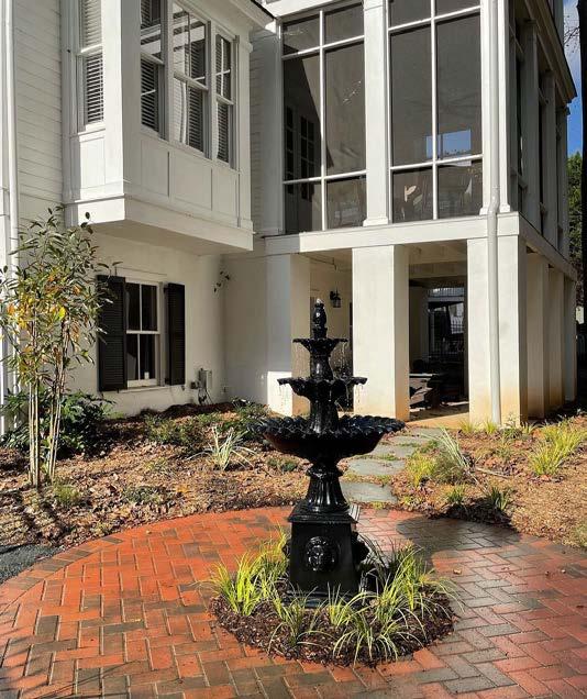 Pink muhly grass greets guests with a soft touch, while the stern yet respectful yuccas guard the front porch steps. In the spring and summer, joe pye-weed, hydrangeas, and chaste trees mimic warmth with color. In the cooler months, camellias, gardenias, and yews remain steadfastly green.