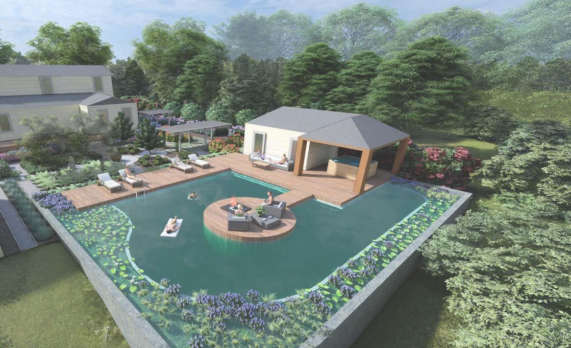 - The pool combines a swimming zone and a regeneration zone, utilizing plants to cleanse the water and maintain water quality.