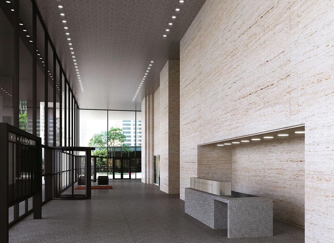 Originally designed in 1973 by B+H, the building’s exterior façade and interior lobby have undergone a transformation to elevate the tenant experience. The renovated ground floor lobby, bathed in natural light from York Street, offers a welcoming and inspiring space, complete with comfortable seating and a modern façade.