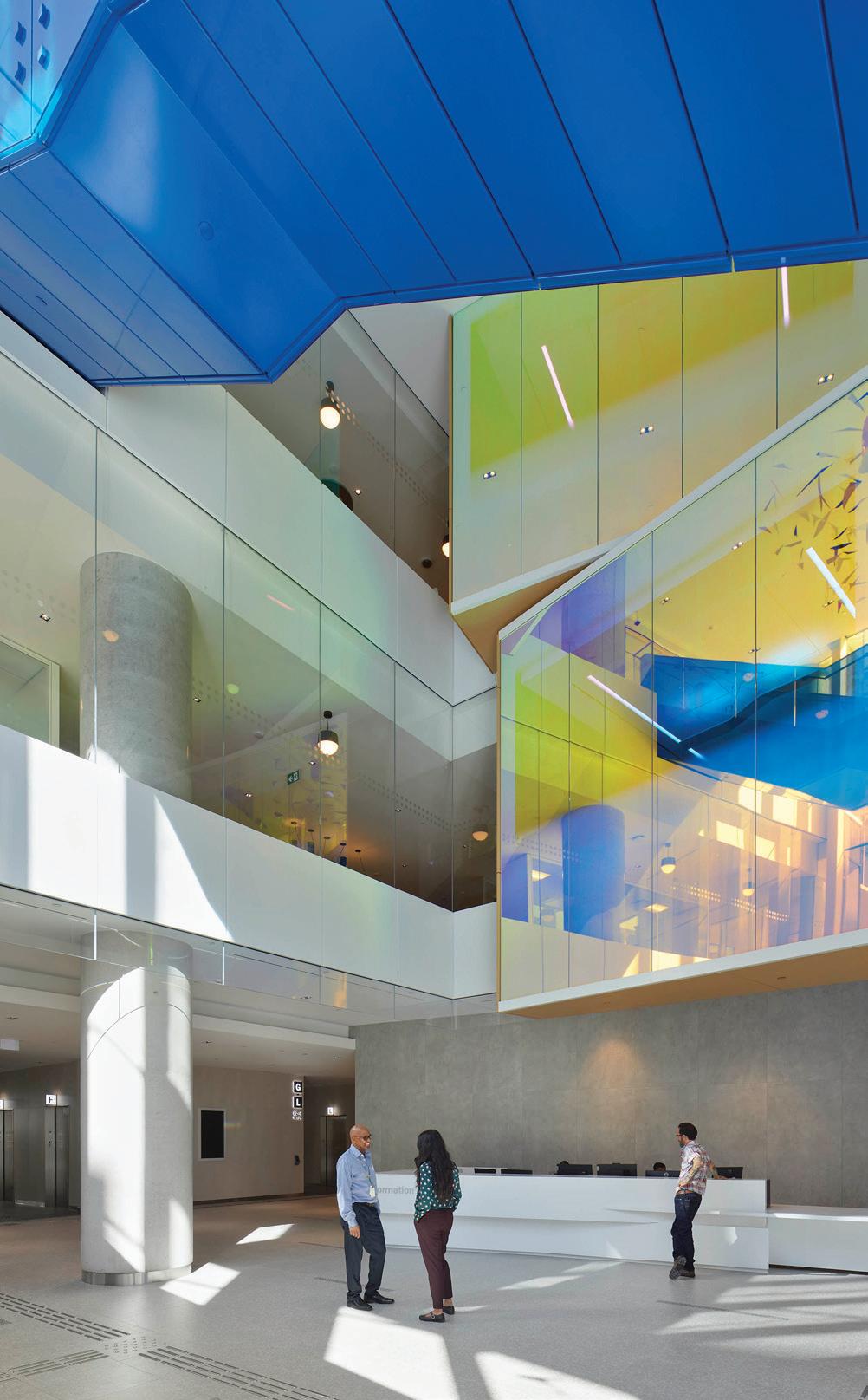 The new home of administration and clinical education at Toronto’s renowned Hospital for Sick Children, the new Patient Support Centre will anchor a renewed SickKids campus and support a collaborative and innovative organizational culture. A two-storey entrance level is wrapped in transparent glass to activate the Elizabeth and Elm street corner; inside, a café and social hub will attract passers-by and provide a vibrant new destination for SickKids staff and the Discovery District community. An undulating façade with vertical fins animates the tower above, the sense of motion amplified by a colourful glass-walled staircase and pedestrian bridge connected to the main hospital buildings. Office workplaces are open and airy, with flexible desking systems and casual seating to accommodate both individual and group work. A rooftop event space and garden terrace capture unobstructed southern views and sunlight.