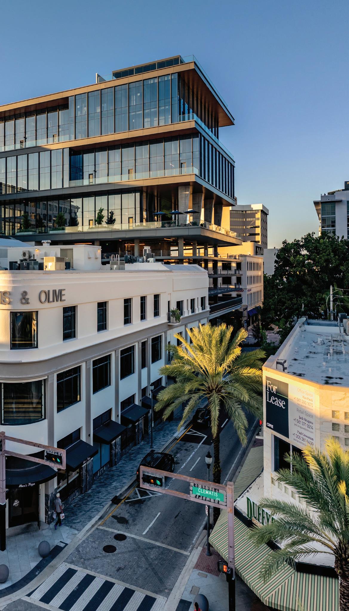 Adjacent to 111 Olive, a vacant parking lot will be transformed into 300 Banyan – a 12-storey bold, geometric glass tower that will house Class A office space with an expansive amenity floor equipped with a state-ofthe-art indoor/outdoor gym and private outdoor terraces can be used by tenants year-round. The tower will also include an elevated parking garage above ground floor retail, lobby and food and beverage offerings.