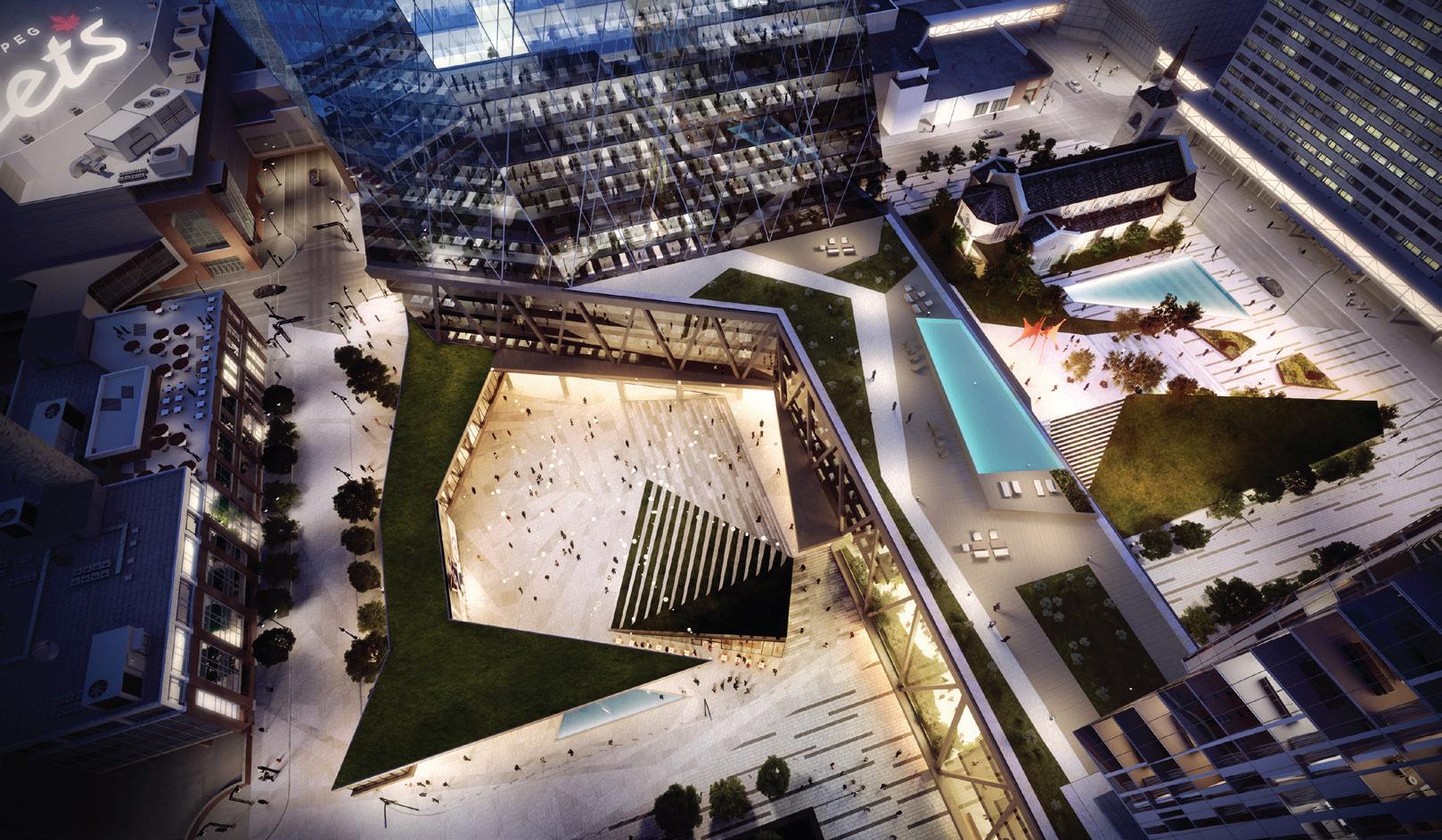 An expansive three-acre public park and residential towers are also planned for the development. The plan includes a diverse range of spaces and services that encourage people to interact and promotes livability through a single destination that supports many needs and connects people, spaces and services. Linked to the downtown core via major pedestrian, vehicular and public transportation networks, the building celebrates all modes of transportation.