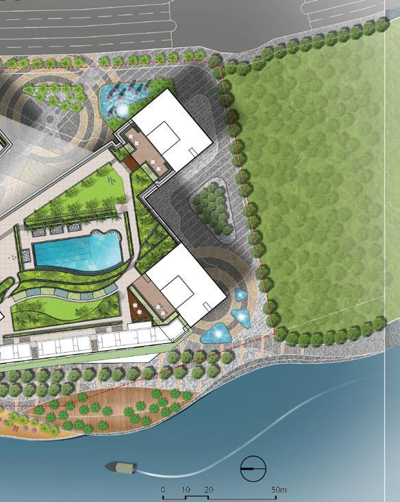 Overlooking a waterfront panorama, this project is the newest mixed-use collection of residential, retail, and office space, creating a barrier-free gateway that plays with light, land, and water. In Malaysia’s new urban hotspot, this development is steadily attracting what all developers hope for—positive public engagement and users with the same penchant for waterfront living as waterfront loving. Without risking the charm of a waterfront location, we responded to the challenge of a super high density program by translating the need into a six- tower architectural solution on 38,000 m2 of land. With a requirement for over 300,000 m2 of mixed-use development featuring 2,000 apartments and an eclectic fusion of office and retail space, this project was an opportunity to let our designers create space instead of blandly occupying it. Our Architecture and Planning & Landscape teams had no limits when it came to innovative, sustainable and metaphorical design touches that played with the natural contrasts of waterfront beauty. And with a contextual canvas featuring the mixed-used development of Johor and Singapore, and the Sungei Buloh Wetland Reserve, inspiration was at an all-time high.