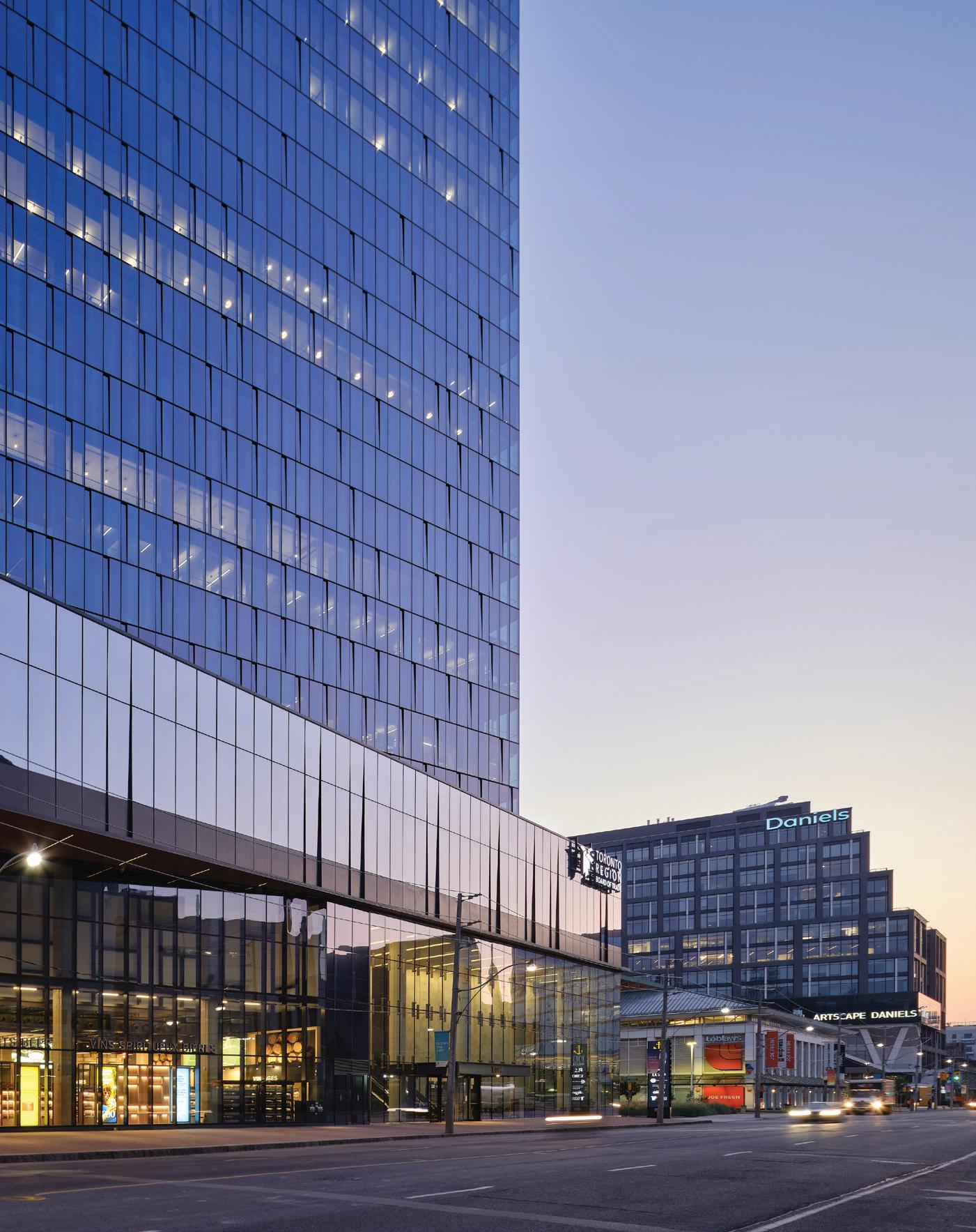 The 24-storey, LEED® Platinum mixed-use commercial, office and retail building at 100 Queens Quay East is an integral component of the first phase of the Lower Yonge Precinct redevelopment, setting a precedent within this future community. A place of work within a predominantly residential community, the tower creates a level of density at the south corner and within the Lower Yonge Precinct that’s required for this urban hub. It has provisions for a large food market and will include the new headquarters of the Liquor Control Board of Ontario (LCBO).