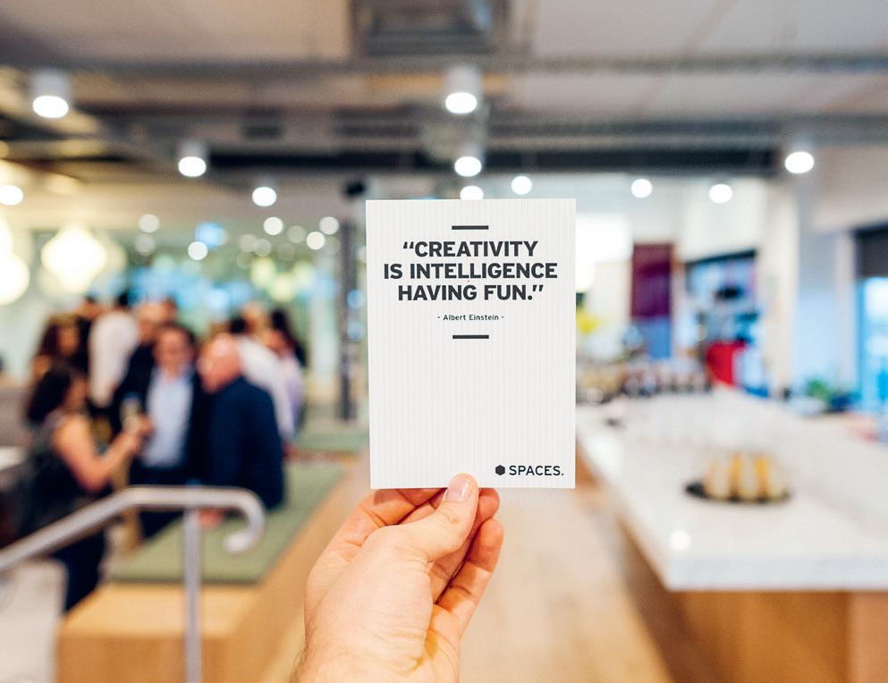 Start up a conversation while you wait for your coffee or introduce yourself over lunch, and you may just find a partner for your next big venture. Or, download the Spaces app to help you find a member or book a room for your meeting. The energy of the Spaces community is contagiousand even if you don’t find a new business associate, you may find a new friend. Add an international network of mobile workspaces and a full calendar of business events, speakers and networking lunches, and you’ll see just how hard Spaces works to keep you engaged and open to new possibilities. At Spaces we believe that a cultural program of events enriches your work-life experience.