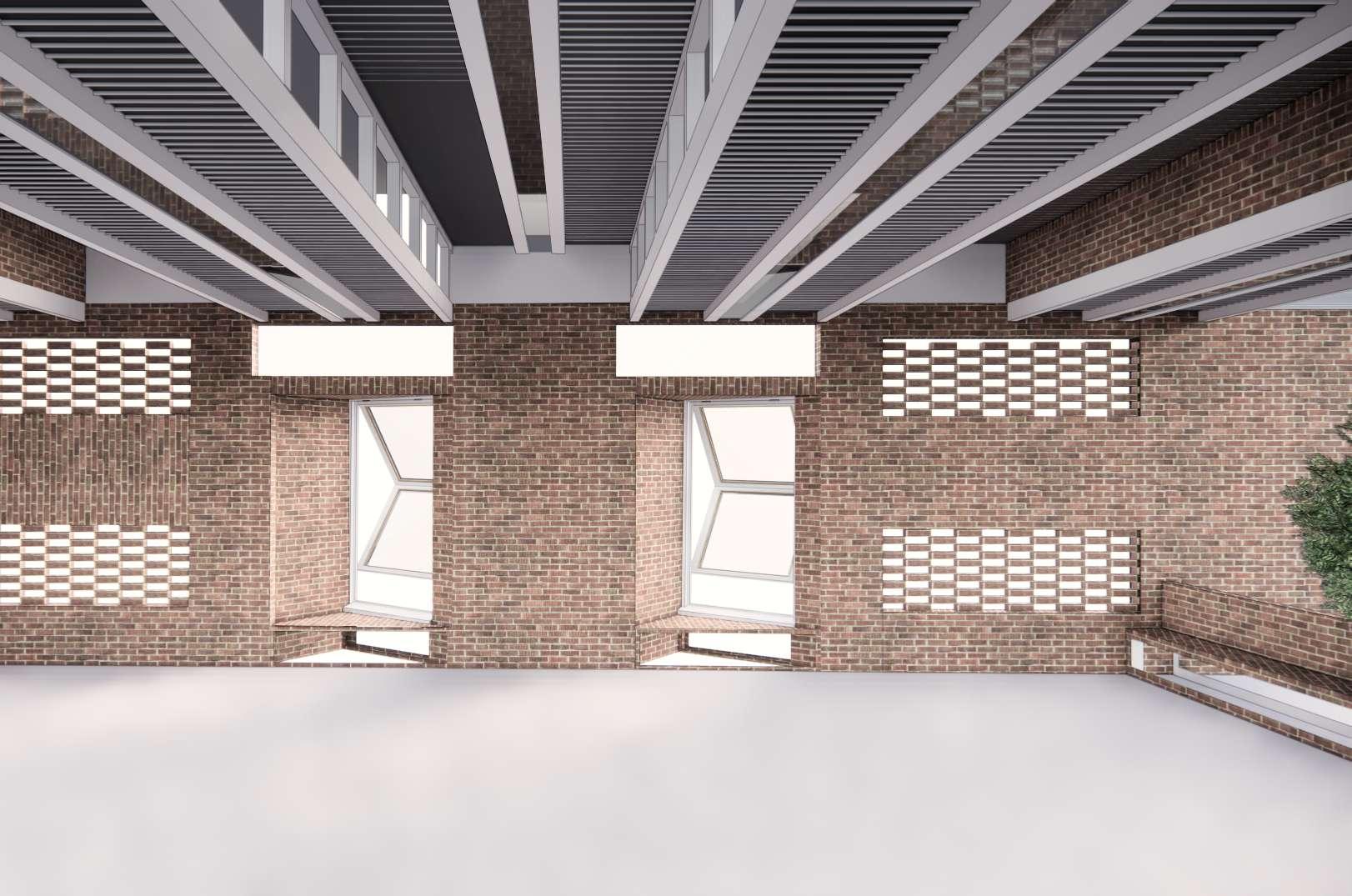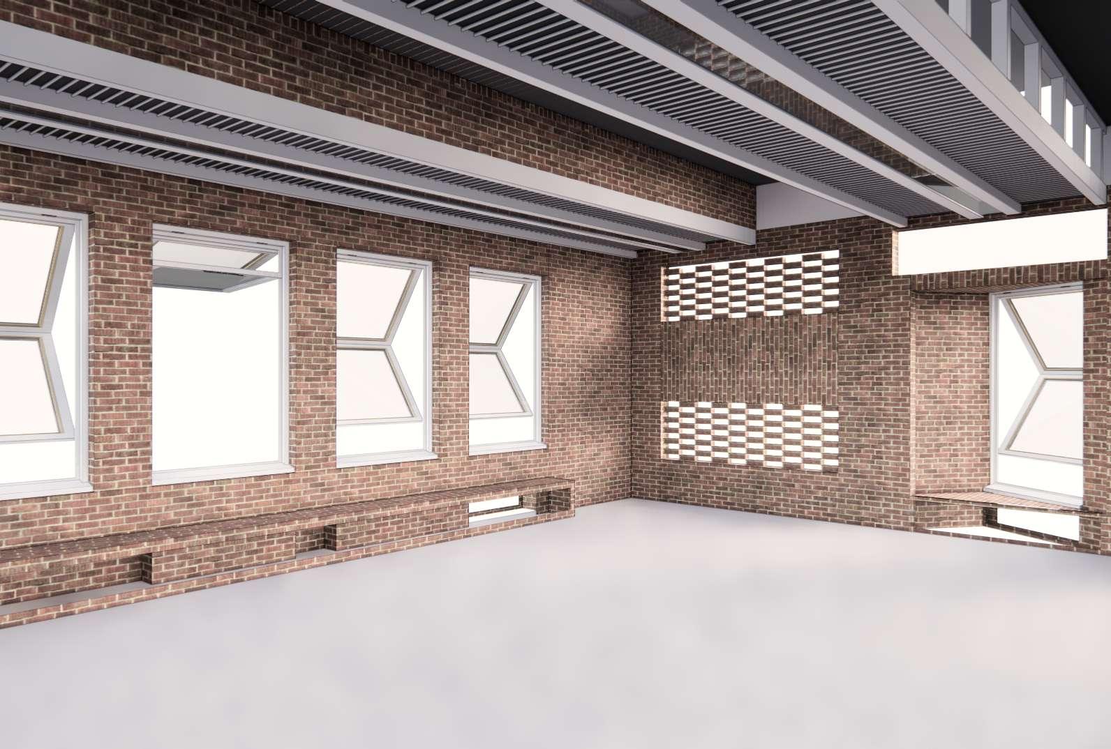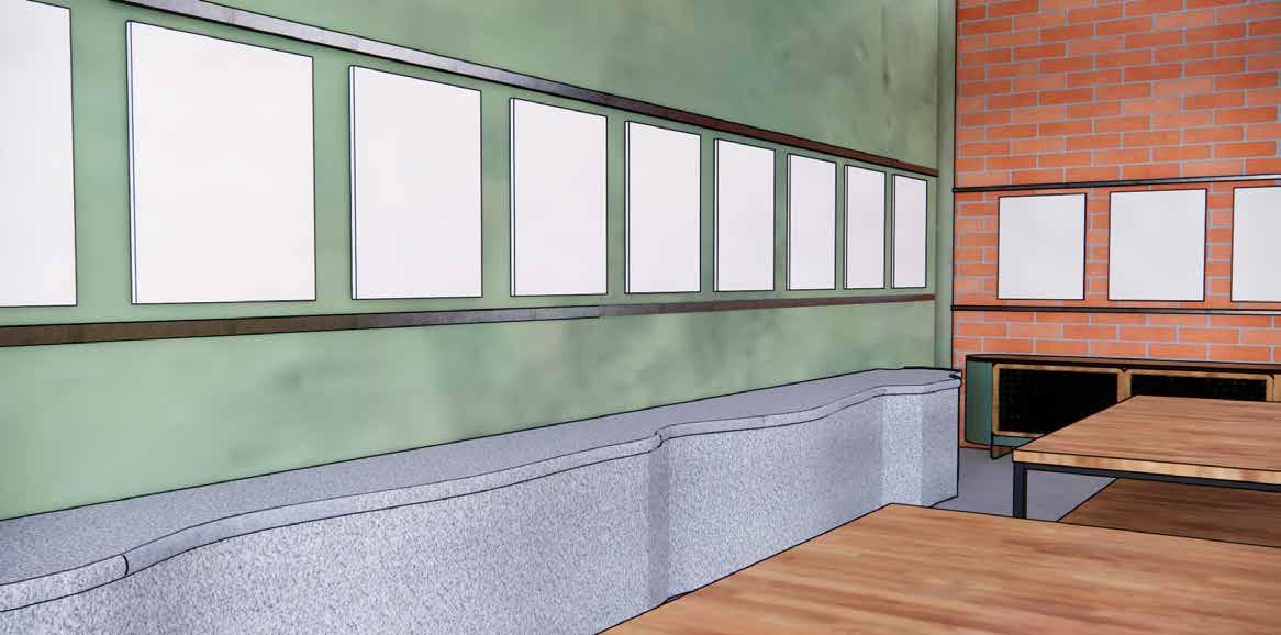 Inspired by the WCFA Campus’ existing language of being a juxtaposed composition of light elements like steel columns along with the language of heavy elements such as brick masonrythe idea was to design the spaces with contrasting filigree and massy components.