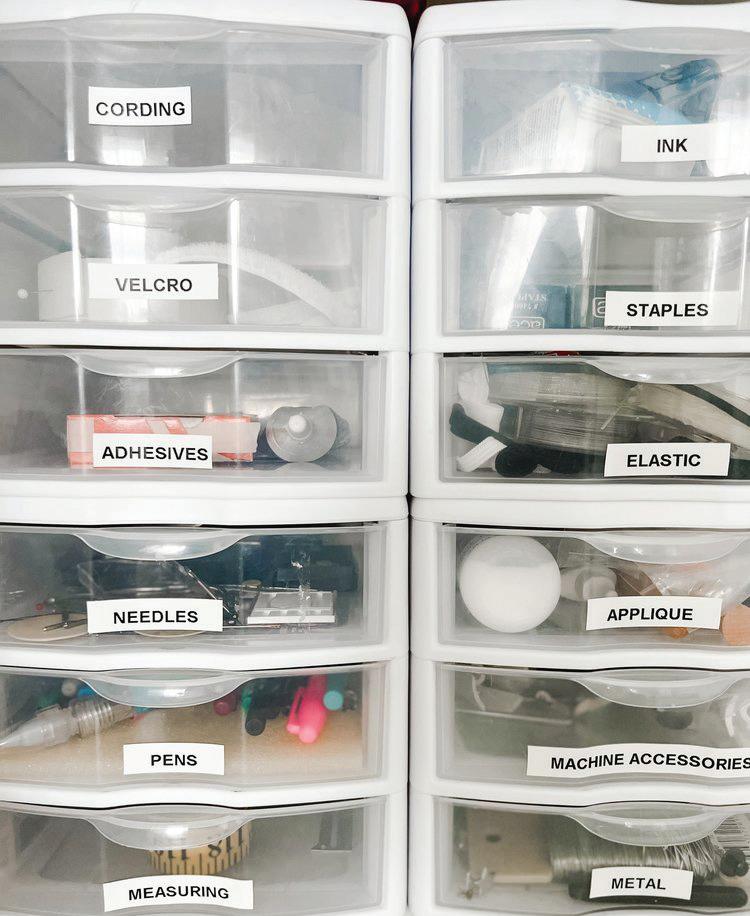So, know what kind of crafter or seamstress you are, shift your mindset, assess your storage space, sort out what you can give away, and then get to work organizing. And do not forget to label it all! May you find as much joy in the organizing as you do in the creating. (Visit the House Peace Amazon storefront to see some favorite sewing and crafts organizing tools.)